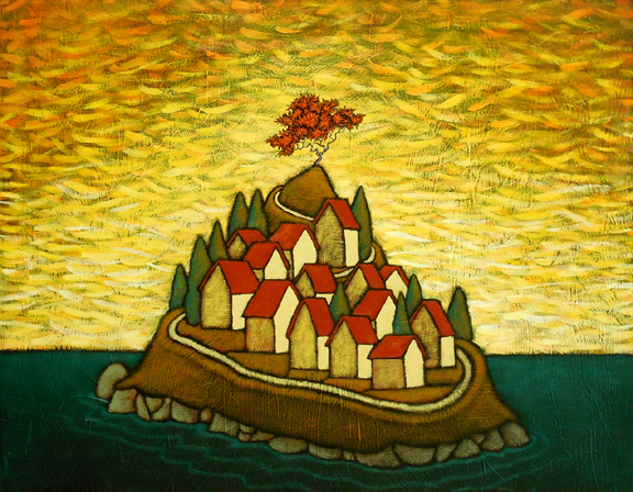 Anyway, I came across a post written for a 2013 show at the West End Gallery that featured the above painting, Islander, as its title piece. I thought the words were pertinent to this time. Its a painting that really resonates deeply with me on a personal level and one that, inexplicably at least for me, has never found a home. It still resides at the Just Looking Gallery in California, waiting patiently for someone to see what I see in it.