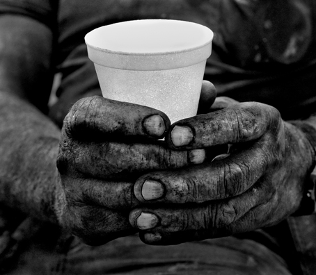 Imagine your child (or your nephew or grandchild) at age 12. Imagine them spending 10 or 12 or even 14 hours a day, six days a week in one of the breaker rooms of a coal mine like the one shown here on the right. Hunched over in the gritty dust of the coal, they picked the coal for differing sizes and to sort out impurities. Imagine the men who are shown in the photo with sticks poking your child, perhaps kicking him to speed him up. Imagine all of this for seven and a half cents per hour.