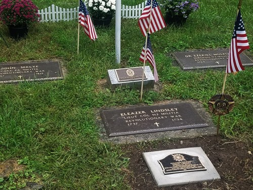 There were about 60 attendees, including members of the DAR, local historians and several direct descendants of Samuel Lindsley who came from as far away as San Antonio, Texas and Columbia, South Carolina. There were also members of the Sons of the American Revolution in full period garb. One brought a part of his collection of Revolutionary era flags and gave us a lesson on the history an meaning of each. They then proceeded to raise their muskets and give a resounding salute to honor Samuel. There were several speakers including Kitty Pierce, the Lindley town historian who is a walking encyclopedia of the genealogy and history of that town.
