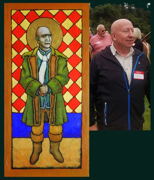 I wouldn’t have been at this event if it weren’t for a painting I did a couple years back. It was from my Icons series which were my imagined images of how I thought some of my ancestors might look. There was no research or source material. Pure imagination. One was of Eleazer Lindsley, the patriarch of the Lindsley family that came to this area around 1790. The blogpost about Eleazer, a most interesting character, came to the attention of historian Kitty Pierce and soon spread to Phil and other members of the family.