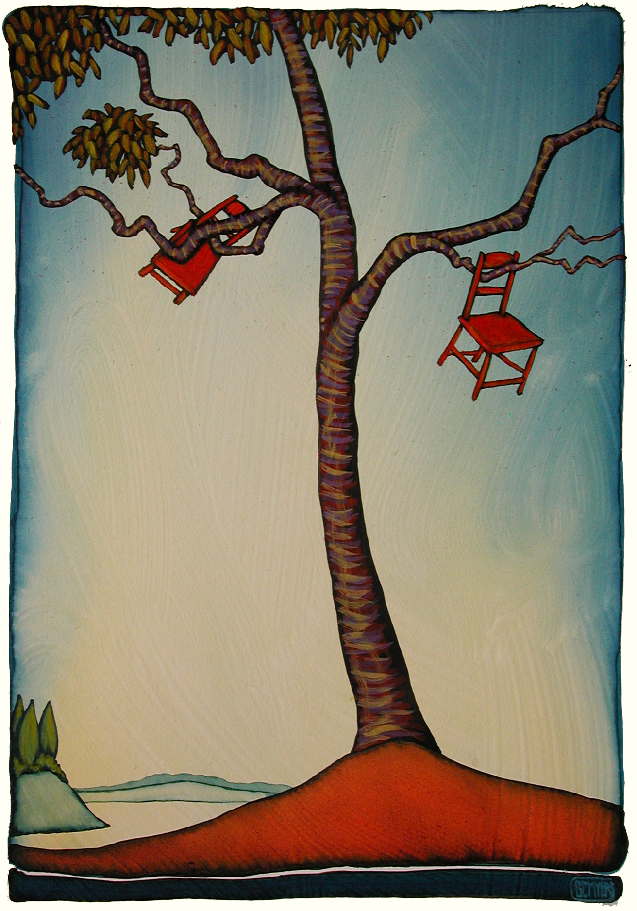 This would be considered one of my Baucis and Philemon paintings, which I first did a decade ago ( they recently celebrated their twentieth) for a couple celebrating the tenth anniversary of their own wedding. It is based on the Greek myth of the aged poor couple who welcome Zeus and Hermes into their humble home. The gods had been unceremoniously rebuffed by the wealthier residents of the village and Zeus was ready to ravage the place. But he was moved by the charity and generosity exhibited to the guests, as well as the love the elderly couple displayed for each other. After their visit, when Zeus brought devastation to the village, he spared their home and granted them two wishes. For the first, he transformed their home into a temple where they lived out the rest of their lives. For the second wish, for which they asked that they remain together for eternity, Zeus made it so that when they died each became separate trees growing from a single trunk that would live forever on a hill overlooking the village.