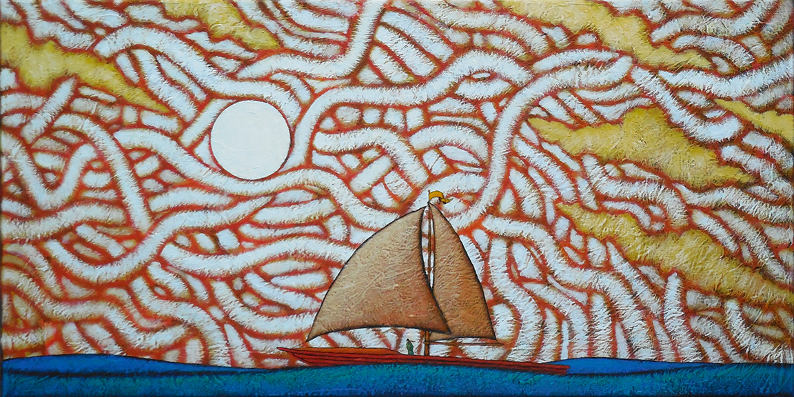 It fit perfectly with what I was seeing in this painting. It seems today that we almost need a secret sun to keep us warm and hopeful as the one that we all can see now gives us heat but not much hope.