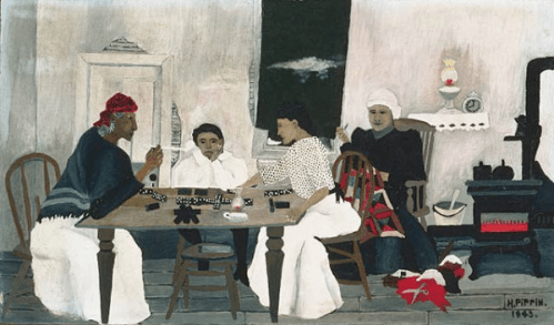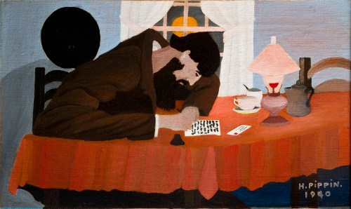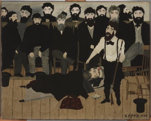 Though born in West Chester, PA, Pippin grew up in Goshen, NY, which interests me because I have three grand-nephews living there. Goshen was where he began his artistic journey after winning art supplies in a newspaper contest, using them to make drawings of the jockeys and horses at the famed Goshen racetrack. He was wounded in World War I, serving in the famed Harlem Hell Fighters, and turned to art in a more serious manner to strengthen his damaged right arm.