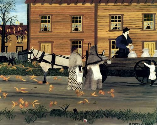 Not surprisingly, I have a real affinity for self-taught and naive painters. Among my favorites is American Horace Pippin who lived from 1888 until 1946. He only produced about 140 paintings in his relatively short life but they are real gems, displaying a wonderfully sophisticated and more mature form of naivete. He achieved a pretty high level of recognition in his short career, being championed by a number of critics as well as artist N.C. Wyeth. The bulk of his work is now held in museums.