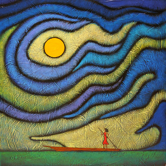 I’ve been working with a new element in my work lately, a lone female figure like the one in the new painting above, and it has been making me think.