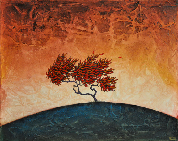 Bit in this case, it came together quickly and without a lot of thought or wringing of hands. It just pushed itself onto the canvas. Maybe it is the slashing strokes that make up the sky. There’s a lot of energy in those slashes and the way their colors react to one another.