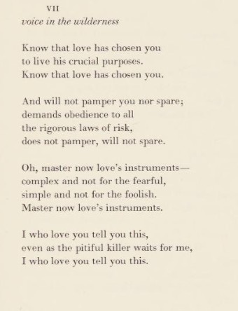 Words in the Mourning Time is a longer poem comprised of ten separate chapters that explores and mourns the world in the time period in the era of the Malcolm X/ RFK/MLK assassinations, and the horrors of the Viet Nam War. It speaks equally to the time in which we now find ourselves in 2025. Below is another chapter from the poem, voice in the wilderness, that really struck a chord with me: