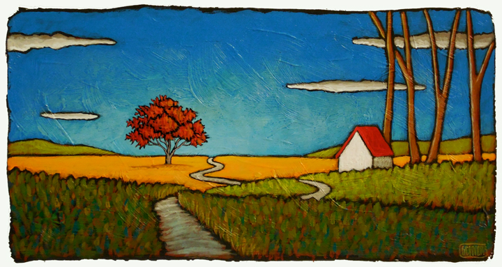 One of the new paintings that is part of my solo show, Traveler, at the Principle Gallery is a small piece titled The Ferryman. It’s a depiction of a man poling a small boat across a body of water, simply constructed with the impact coming from its starkness and the intensity of its color. It’s a theme that I have revisited several times over the years. Perhaps it is the symbolic nature of the crossing or the essential nature of a single individual propelling themselves forward.